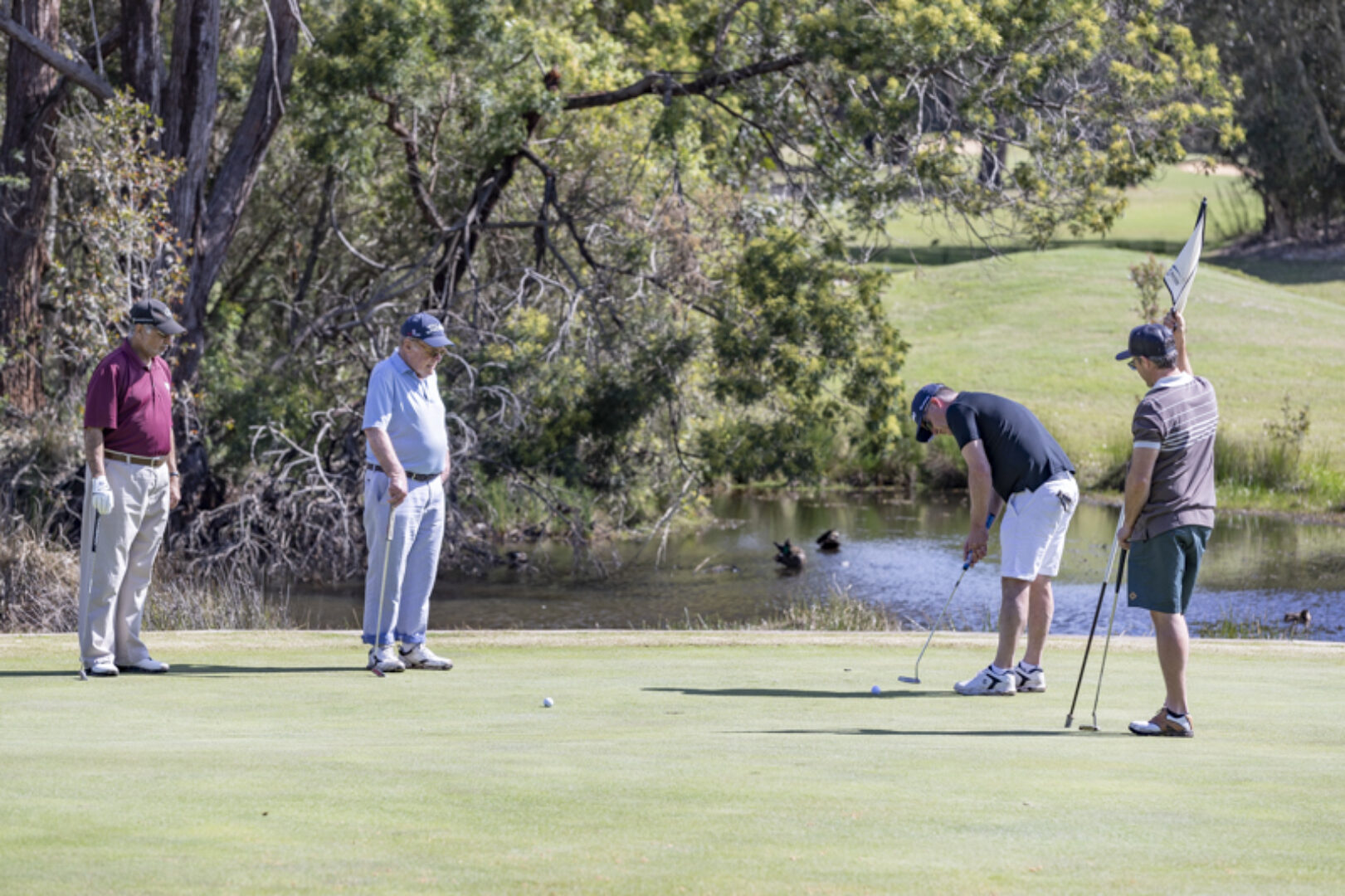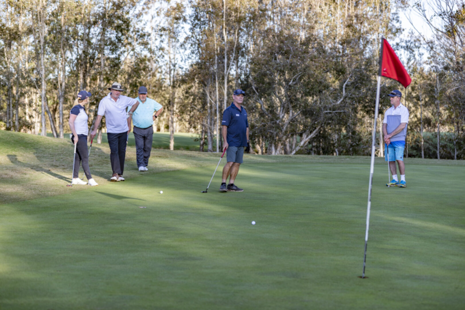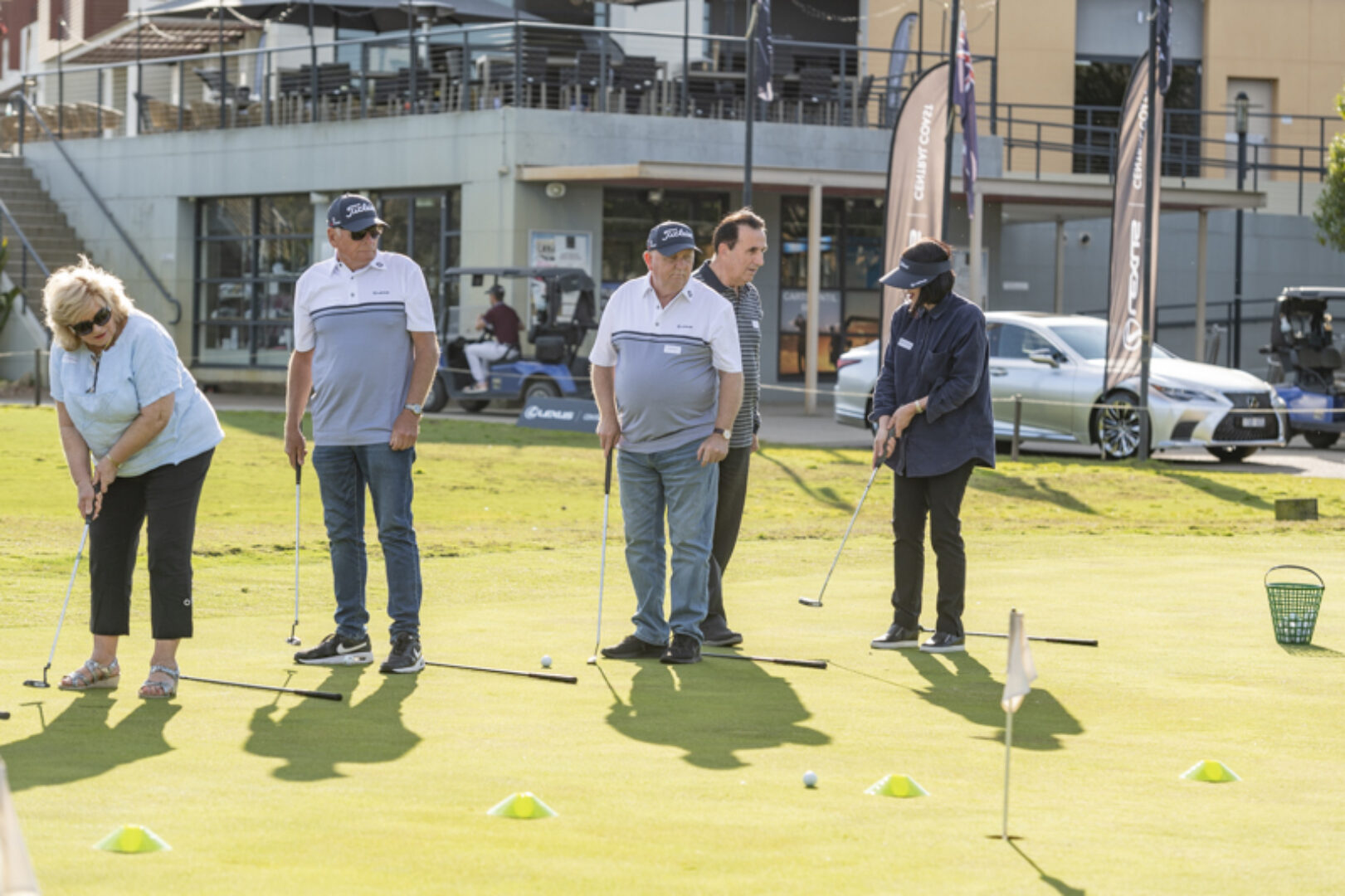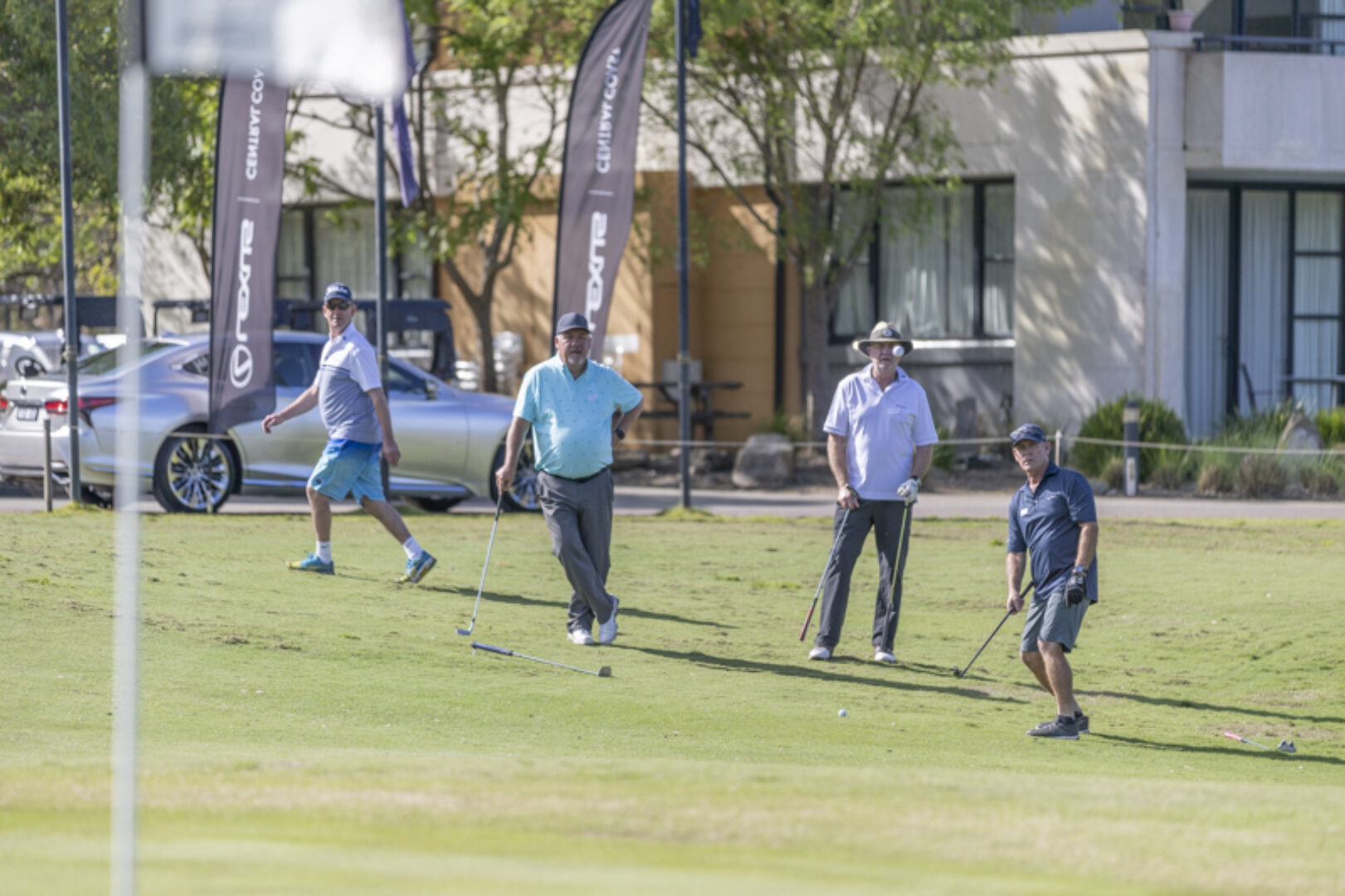 Scoring was bound to be good with Dimi Papadatos (Lexus Golf Ambassador) and three other golf pros assisting on course. The third placed team of Adam Mead, Darren Welsh, Sanjeev Mehta & Graham Muller started slowly with five straight pars. Two birdies would follow in the next three holes but then they had an incredible run of birdie, eagle, birdie, birdie to rocket them up the leader board into third place with nett 53.75. The identical score of 53.75 was recorded by the runners up and they were lucky to get over the line on a count back. Their round started well with some early birdies but then on their 5th hole (the 9th) they made their only bogey of the day to slow momentum. Luckily for them, two birdies and two eagles would follow and allow them to shoot 65. Well played, Trevor McMullen, Stephen Holmes, Brian White & John Quinlan. The winners were off to a great start with a birdie on their first hole. This was followed by three more birdies and a hole in one on the charity hole that allowed them to win by just over a shot with nett 52.25. Congratulations Kay Walker (36), Maria McGann (36), David Manson (q5) & Wayne Cassidy (23). For the full results from the day, please click on the button below - 'Download All Results'.